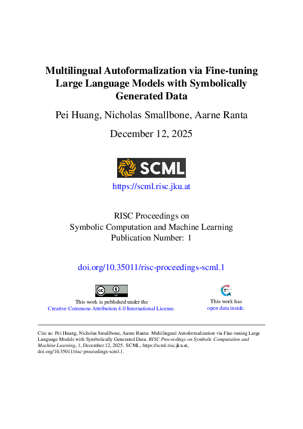December 12, 2025: SCML Publication 1: Multilingual Autoformalization via Fine-tuning Large Language Models with Symbolically Generated Data